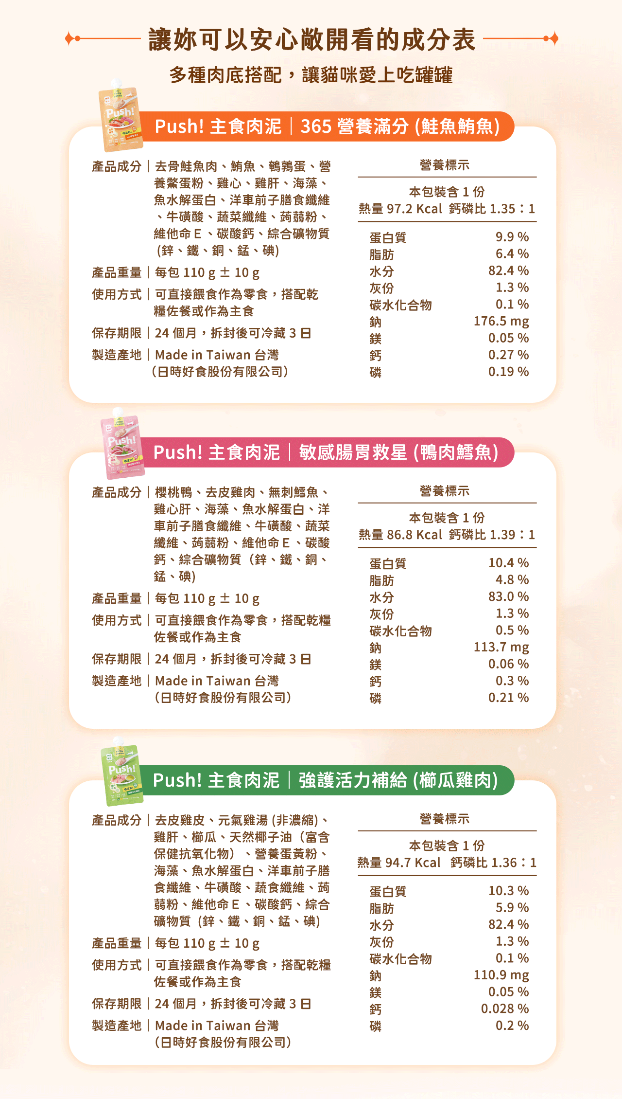 Push! 堅信「簡單就是健康,健康就要簡單」。每日每刻吃好的食物,讓毛孩維持體態及食慾,相互陪伴每一天就是幸福!